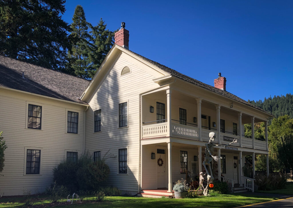 The town of Yoncalla was in a rather nice little valley, and I set out to find a historic house I knew was nearby. When I got to the end of the road, the most extraordinarily friendly public worker, who was, weirdly, there to remove some graffiti on the asphalt by the house, was delighted to introduce me to the man who lives next door to the house, in our featured photo: the Charles Applegate House. The man’s wife is the great-great granddaughter of Charles Applegate, whose brother Jesse was a key figure in Oregon history. The man said it is the oldest house still owned by its original family in all of Oregon. The three Applegate brothers all ended up settling in this valley, but Jesse Applegate’s house up the road is now gone. A historic roadside marker explains who he was and where it was.