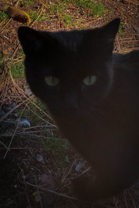 I watched two white pelicans feeding with their heads underwater, and noticed they always dunked themselves at exactly the same time. You’d think one would want to keep watch. I took many pictures of them, but the telephoto lens on my iPhone is so bad, they are worthless. Then a skinny little friend came by, and learned to like being petted, between forays around the site to look for bugs to eat. He or she was very vociferous about something, but I never knew what. It was either the cat, a blue jay shrieking, or an eagle screaming that kept me company while I read my book. As the sun got lower it cooled off quickly, so I got ready to go into the restaurant for dinner.